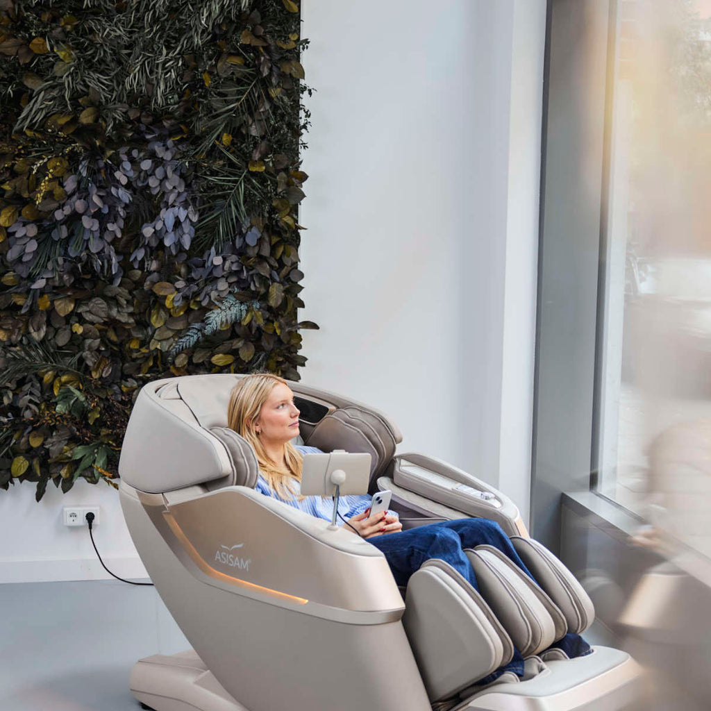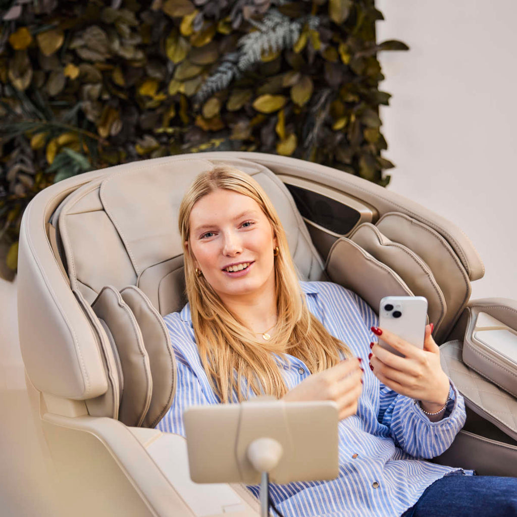 Ein kleines Beispiel, warum dieser unschlagbare Massagesessel einem menschlichen Masseur bei weitem überlegen ist: ein Masseur kann mit seinen Händen, Ellenbögen oder Knien (wie bei einer Thai-Ganzkörpermassage) immer nur an zwei Stellen gleichzeitig wirken. Dieses Gerät wirkt aber gleichzeitig an viel mehr Stellen und das mit einer intelligenten Kraft und Ausdauer, zu der kein Masseur der Welt in der Lage ist. Hier bleiben keine Wünsche offen und der Wellnesseffekt übertrifft jeden Besuch im Massagesalon!